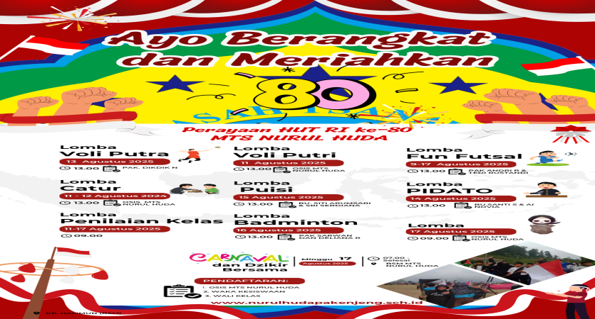DALAM MEMPERINGATI HARI KEMERDEKAAN REPUBLIK INDONESIA KE-80 MTS NURUL HUDA AKAN MEMRIAHKAN DENGAN BERBAGAI KEGIATAN
